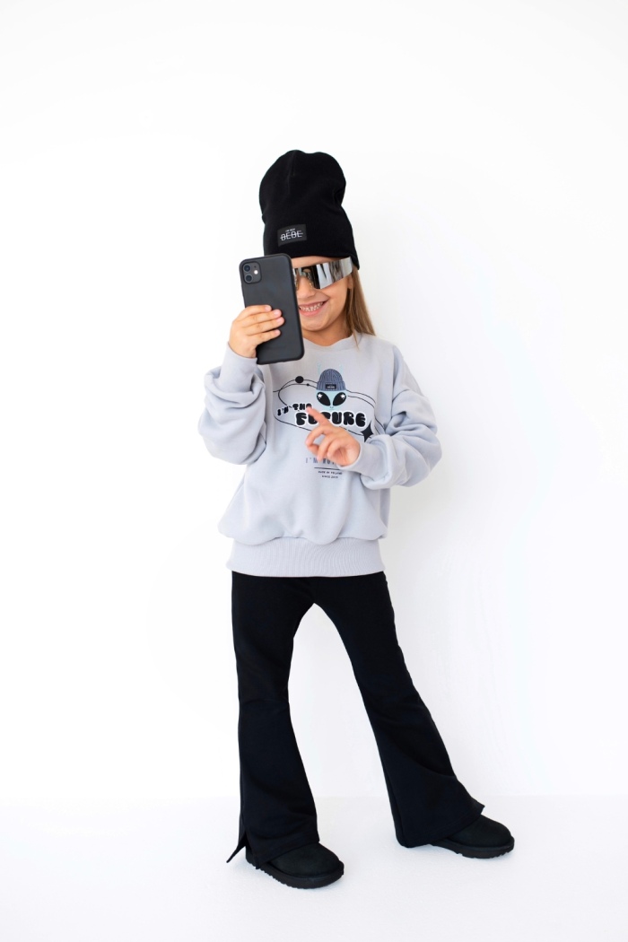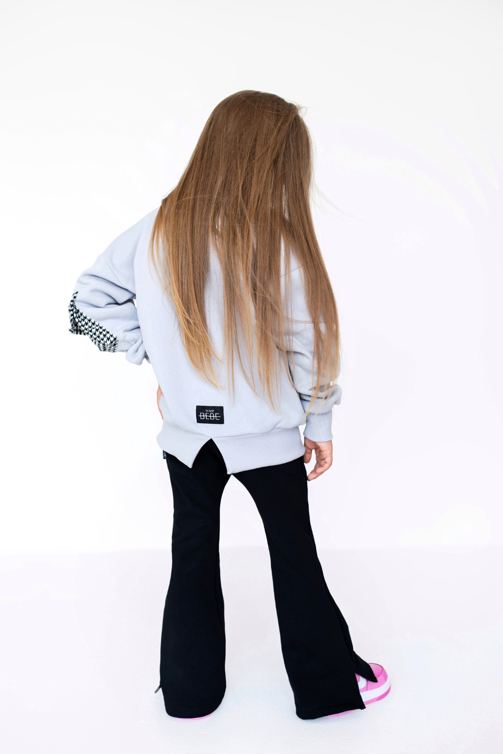Długie legginsy dzwony, typu flare. Miękkie i elastyczne, co zapewni dziecku pełną swobodę ruchu podczas zabawy i codziennych aktywności. Dzięki modnym rozcięciom po bokach, legginsy zyskują nowoczesny akcent, który wyróżnia je spośród klasycznych fasonów. Idealne na co dzień, do wystylizowania na sportowo z bluzą lub na specjalne okazje do koszuli.